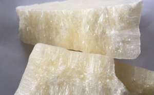 【藥材】完整者多為圓形厚塊,一般已打碎成不規(guī)則塊狀,大小不一。白色,或微帶黃色,不透明或微透明;表面平滑或稍顯皺紋,有光澤,觸之有滑膩感。體輕,能浮于水面;質(zhì)硬而稍脆,用手搓捏則粉碎。斷面不平正,呈針狀結(jié)晶形,或顯小顆粒狀,具玻璃樣光澤。有微弱的特異臭氣,味淡,嚼之如細(xì)沙樣。不溶于水、醚及氯仿中,可溶于苯及石油醚中。熔點80~83℃。以色白、質(zhì)硬、致密而無氣泡。無敗油氣味者為佳。